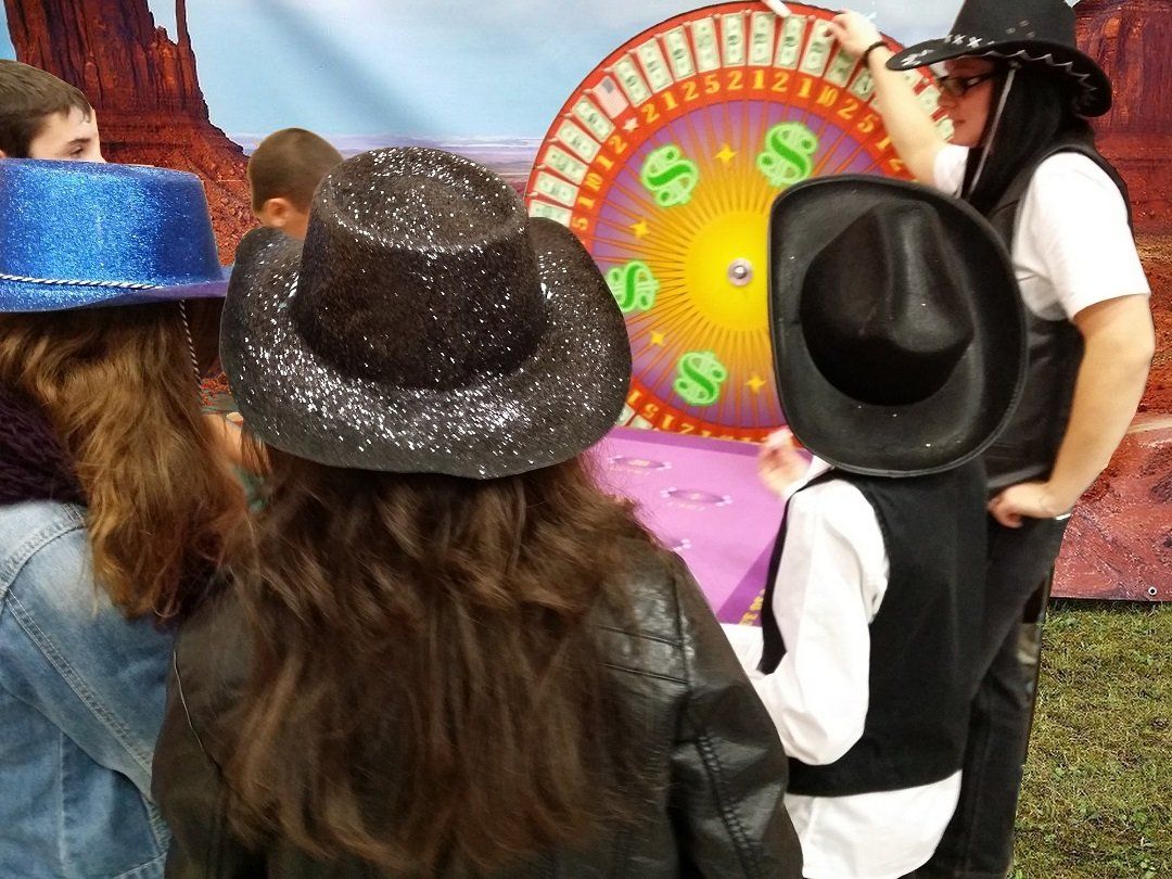 Distribution de confiseries à chaque enfant. Ils se dirigeront ensuite vers la roue des bonbons ou ils pourront flamber sans risque en récoltant un maximum de friandises en misant sur la roue.
